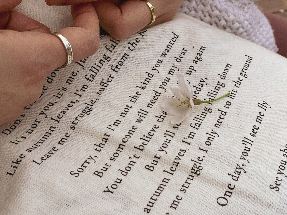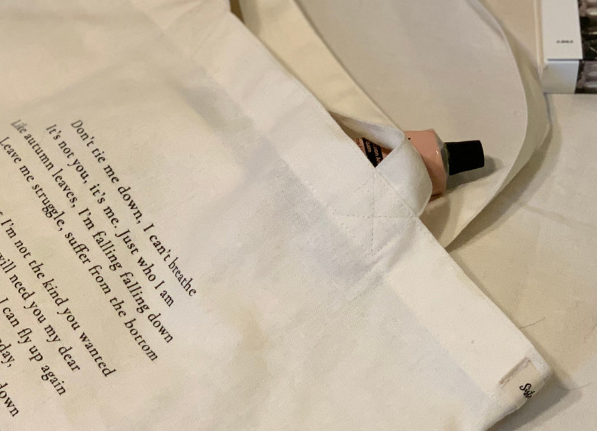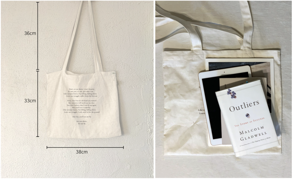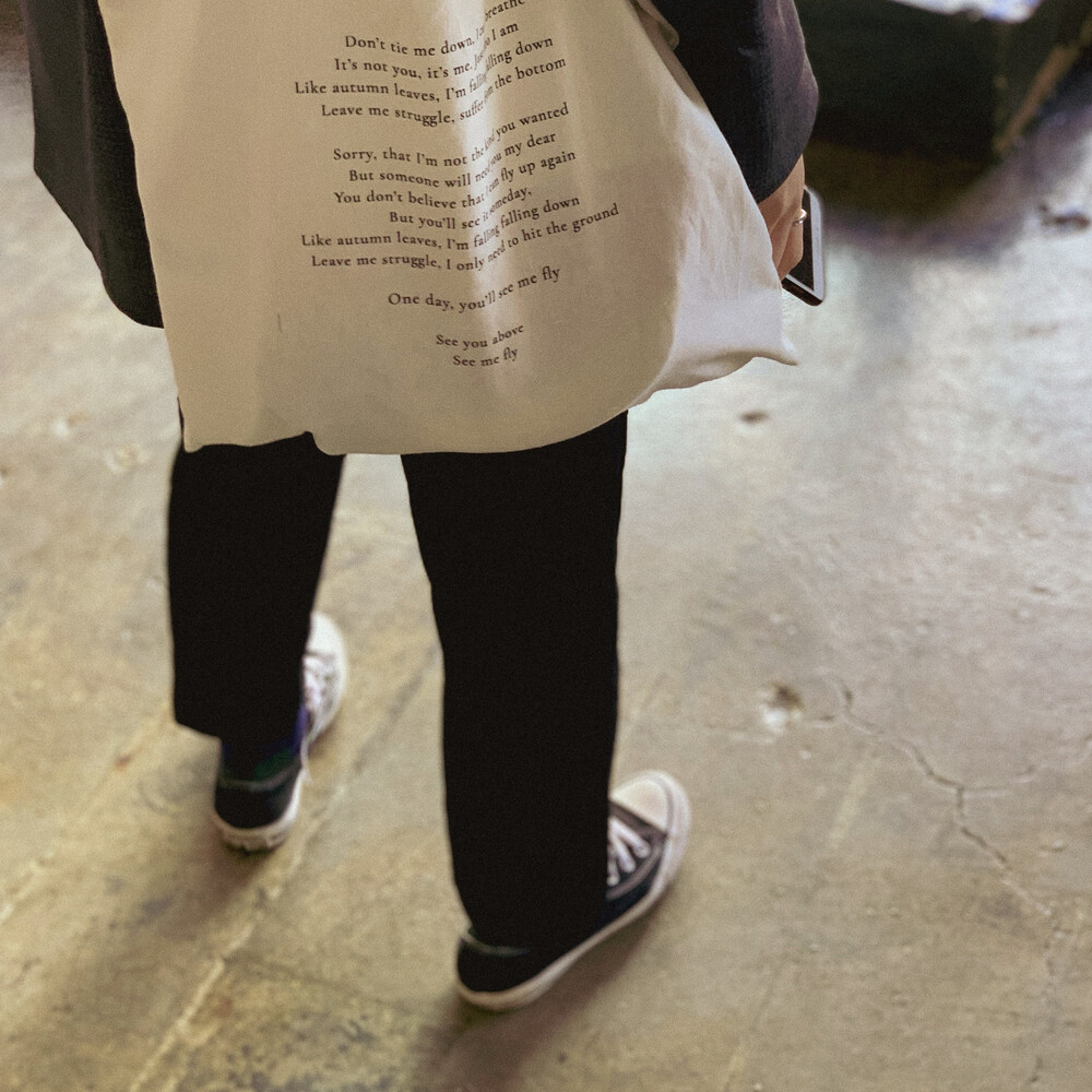 리릭스백은 시스터즈랩의 멤버이자 뮤지션인 Evey가 발매한 "Butterfly"의 노래 가사를 담아 특별한 가방입니다.