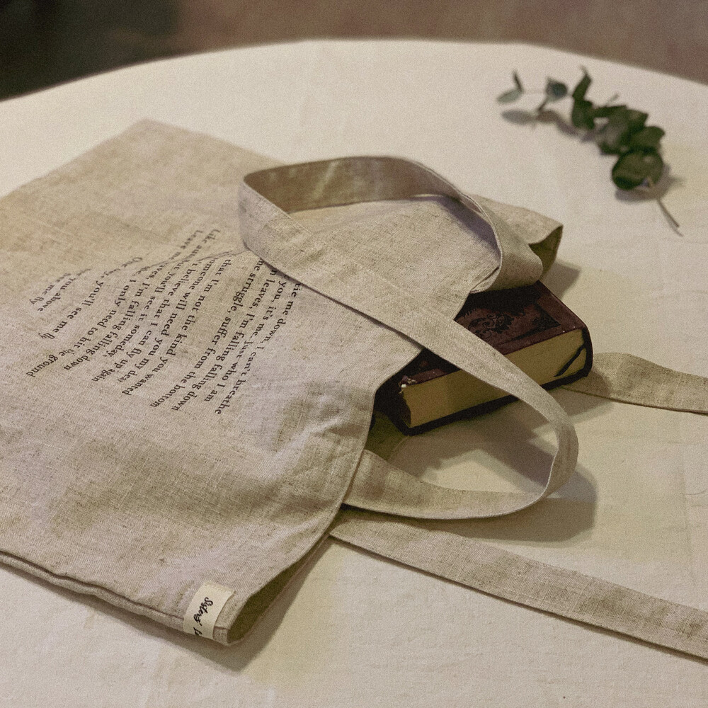 평소 에코백을 즐겨 드는 저희는 이번 앨범의 주옥같은 가사를 담기에 가장 힙하고 실용적이겠다는 판단으로 에코백 타입을 선택했습니다. 그렇게 시스터즈랩의 리릭스백(Lyrics Bag)이 탄생하였습니다. [Butterfly] 영문 가사의 레터링 디자인과 린넨 원단의 고급스러움으로 데일리하게 들기 좋고, 오래 들어도 질리지 않을 에코백이랍니다.
