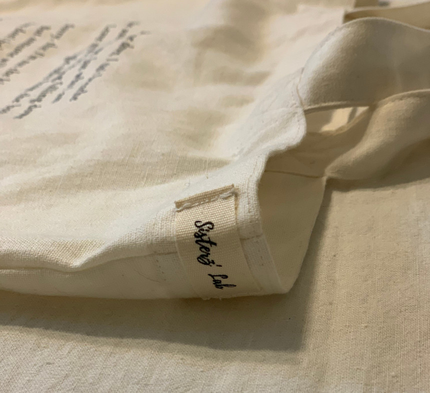 가방 측면에 시스터즈랩 라벨이 붙어있어요.