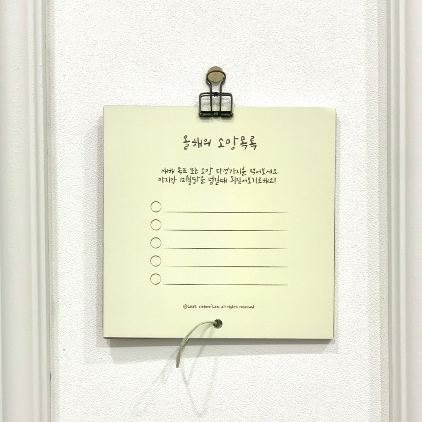 "이번 한국 달력 마지막장에는 특별히 25년도 위시리스트(소망목록)를 적어둘 수 있는 공간을 마련했어요. 새해에는 왠지 무언가 계획하고 싶고 이루고싶은 목표나 소망들이 있잖아요. 적어두고 1년 뒤 돌아보고 기억할 수 있으면 좋을 것 같았어요. 더도말고 덜도말고 꼭 하고싶은 딱 다섯개!!🖐️ 다섯가지만 적어보고 내년 마지막날에 열어봐요."