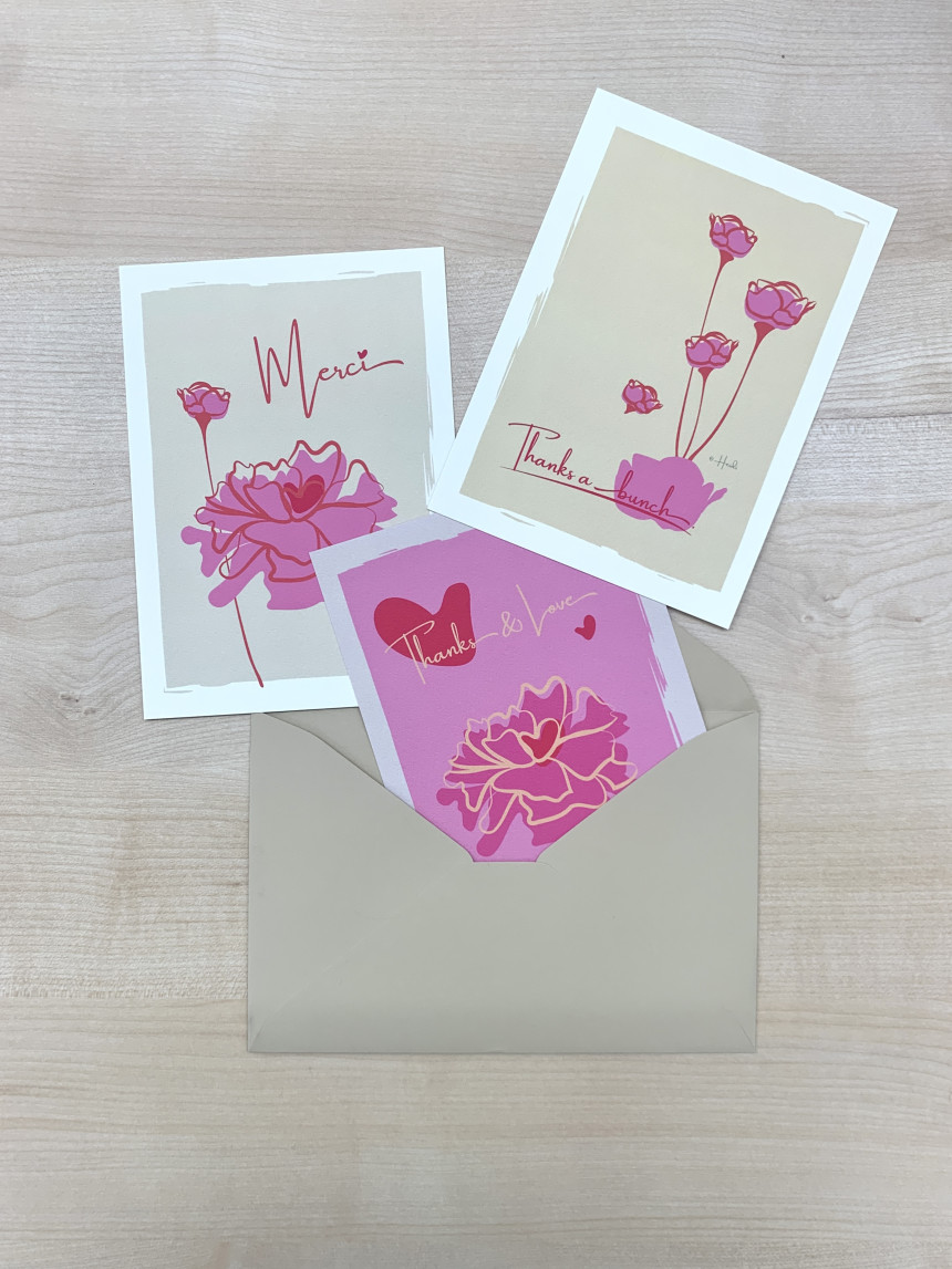 꽃 일러스트 엽서 시리즈 [감사] + 봉투