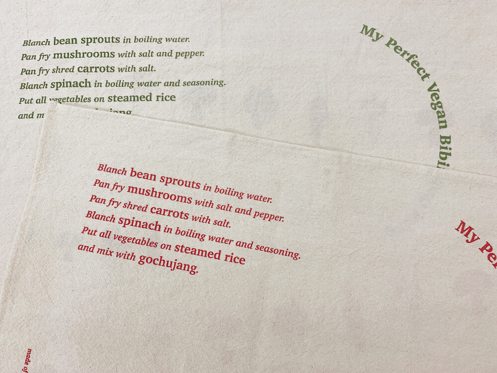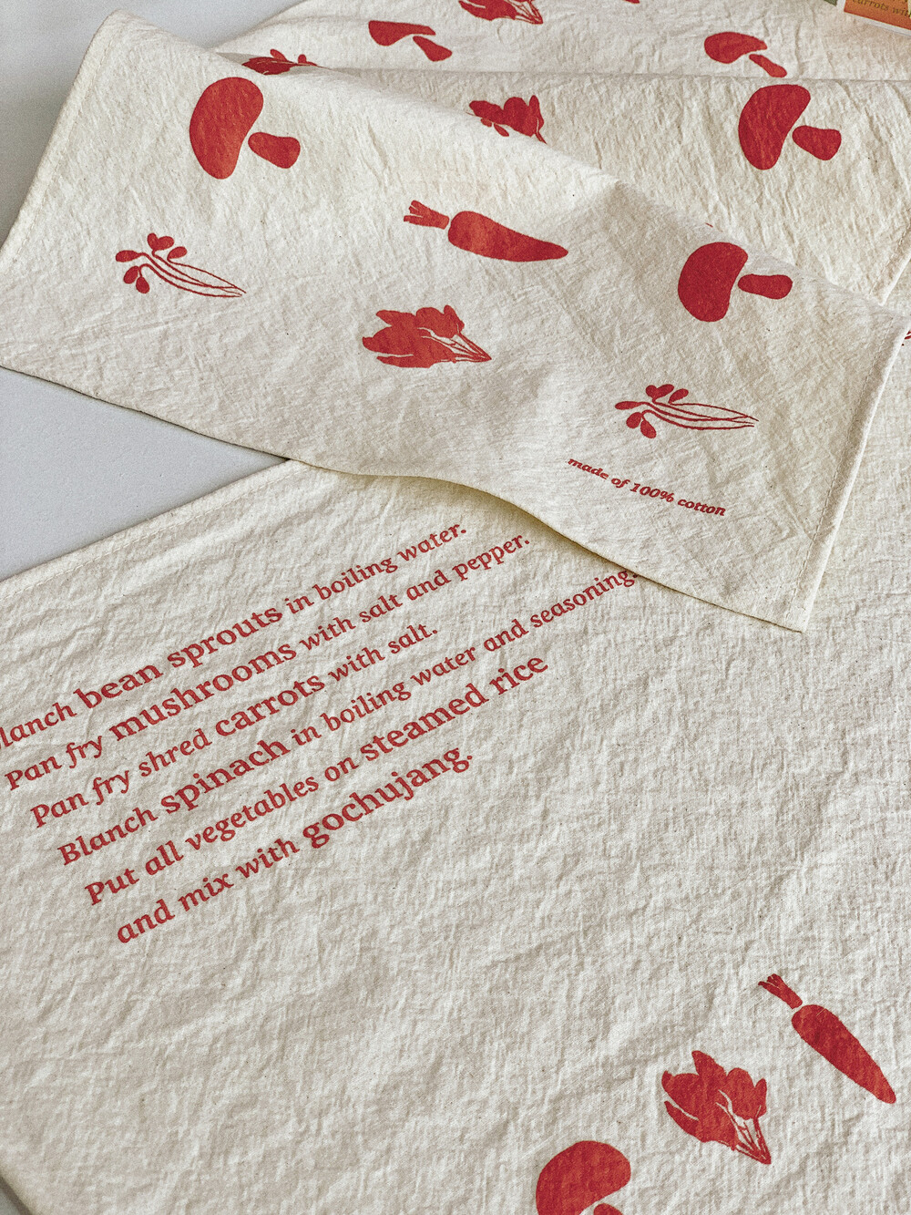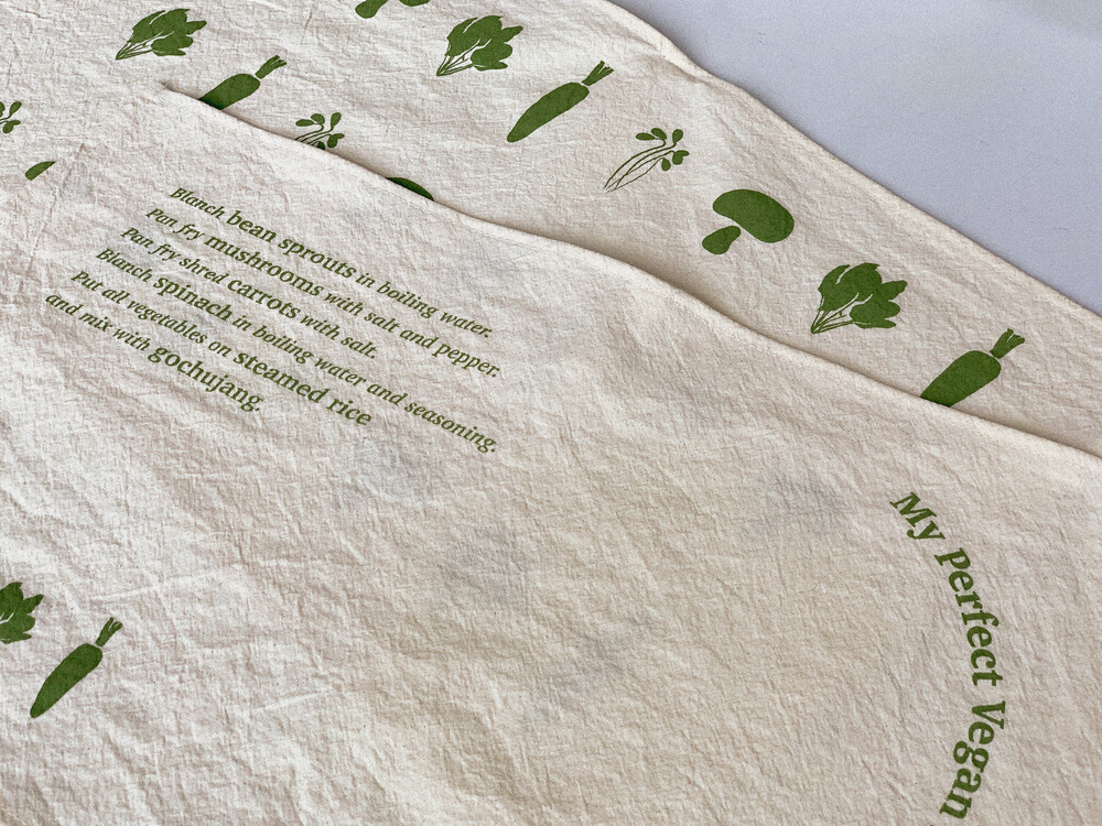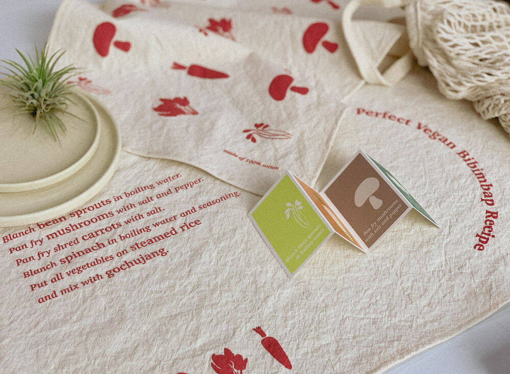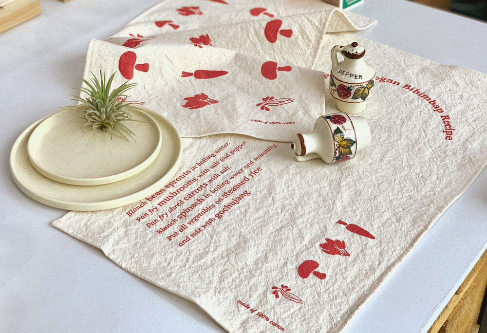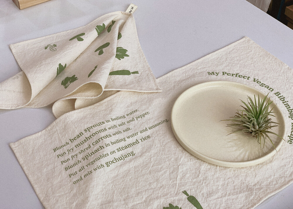 비건레시피를 주제로 한 레터링과 일러스트가 담긴 감각적인 테이블매트겸 키친크로스를 소개합니다🙌