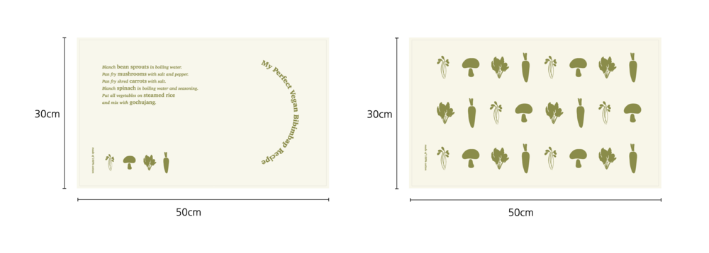 < 비건레시피 테이블매트[비빔밥]_올리브그린: 패턴타입(상), 레터링타입(하)>