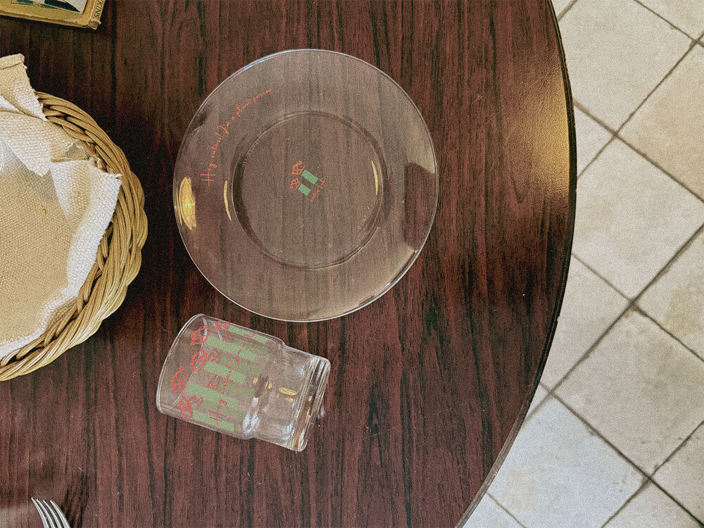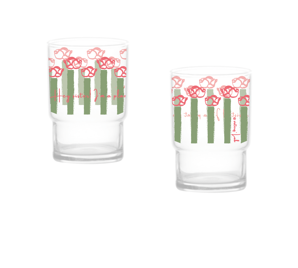 생기 넘치는 레드 컬러와 빈티지 그린 컬러가 매력적인 테이블웨어로 패턴 드로잉이 가득한 유리컵과 심플한 유리접시가 세트로 구성되어 있습니다.
