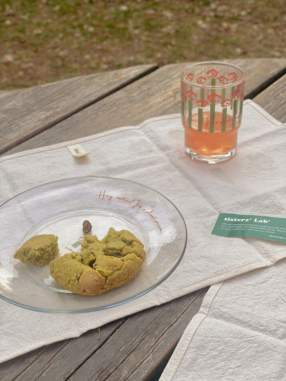 봄, 여름의 계절에 더욱 어울릴 아담한 사이즈(245ml)의 유리잔과 유리접시(지름 19cm)입니다.💓