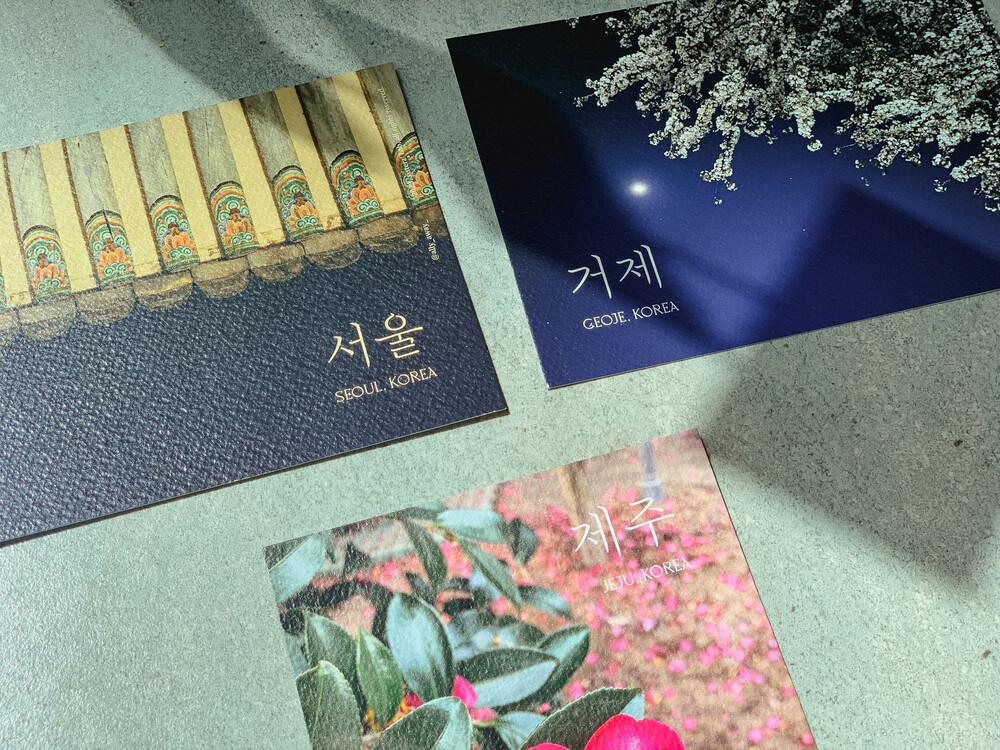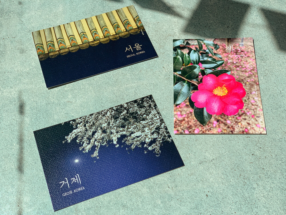 우선 먼저 선보이는 서울, 거제, 제주를 3개의 미니포스터로 만들었습니다. 기본 엽서보다 약간 큰 사이즈(12x17cm)로 제작되어 벽에 붙여놓거나 촬영 소품으로 활용하기도 좋답니다.