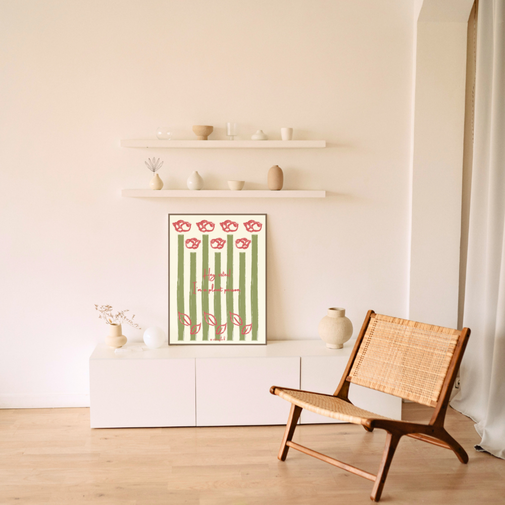 꽃, 식물을 스트라이프 패턴을 메시지와 담아 내추럴하고 우아한 무드로 표현한 포스터입니다.