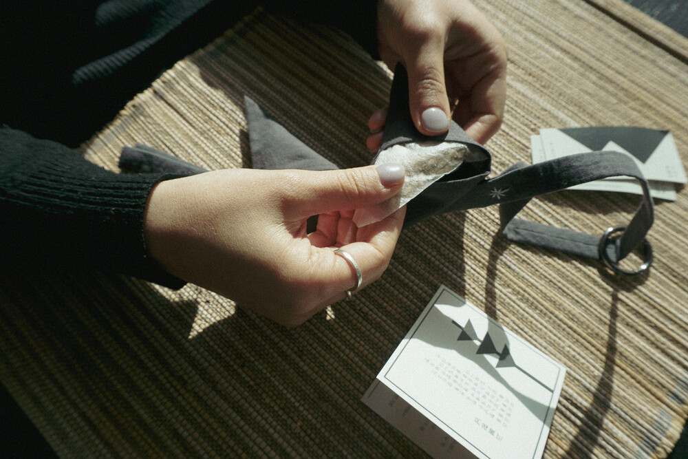 본래 괴불 노리개는 자투리 헝겊을 귀나게 점어서 속에 솜을 넣어 만드는데, 괴불 향낭은 속에 향 파우치(샤쉐 스톤)를 넣을 수 있도록, 그리고 리필을 통해 교체를 용이하게 할 수 있도록 변형하여 디자인하였습니다.