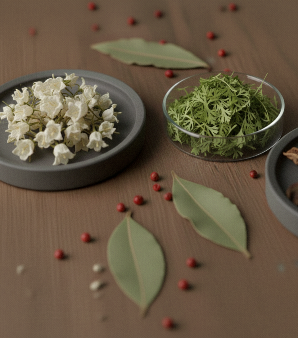산 향은 쑥의 푸른 기운과 백도라지꽃의 촉촉한 꽃내음, 땅의 기운이 느껴지는 파출리의 깊은 잔향으로 이루어져 산의 여러 결을 닮아 있습니다.