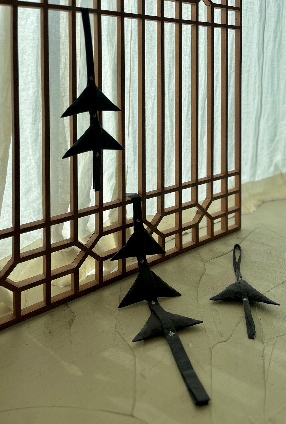 괴불 향낭은 액운을 물리친다는 의미를 지닌 한국 전통 장신구 '괴불 노리개'에서 영감을 받아 개발한 패브릭 향낭(방향제)입니다. 괴불 노리개의 기복적 의미를 담아 현대적으로 재해석한 패브릭 오브제에 조향 전문 브랜드와 협업하여 개발한 한국적인 향을 담았습니다.